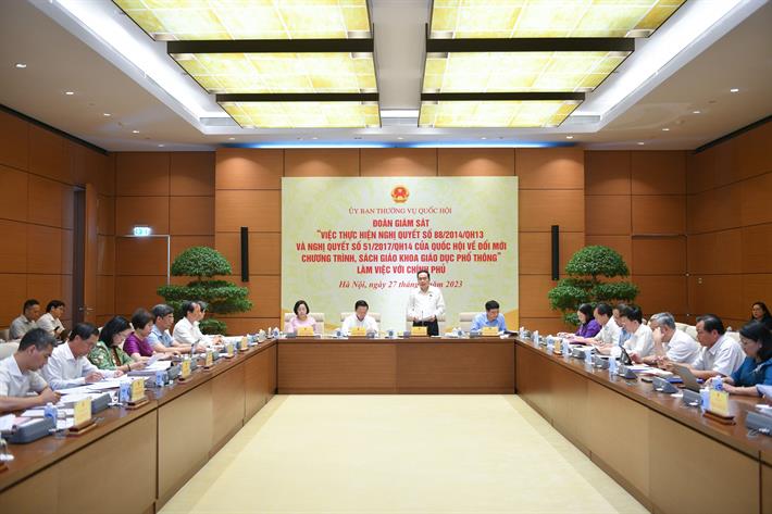 Phát biểu mở đầu buổi làm việc, Phó Chủ tịch Thường trực Quốc hội Trần Thanh Mẫn đánh giá: Sau gần 10 năm triển khai thực hiện Nghị quyết số 88/2014/QH13 và Nghị quyết số 51/2017/QH14 của Quốc hội về đổi mới chương trình, sách giáo khoa giáo dục phổ thông đã đạt được một số kết quả tích cực. Tuy nhiên, đây là sự nghiệp lâu dài, đầy khó khăn, thách thức; do vậy, cần giám sát, đánh giá tình hình triển khai, thực hiện từ đó có giải pháp, đề xuất, kiến nghị để khắc phục kịp thời những khó khăn, vướng mắc, góp phần thực hiện thành công chủ trương quan trọng này của Đảng, Nhà nước.