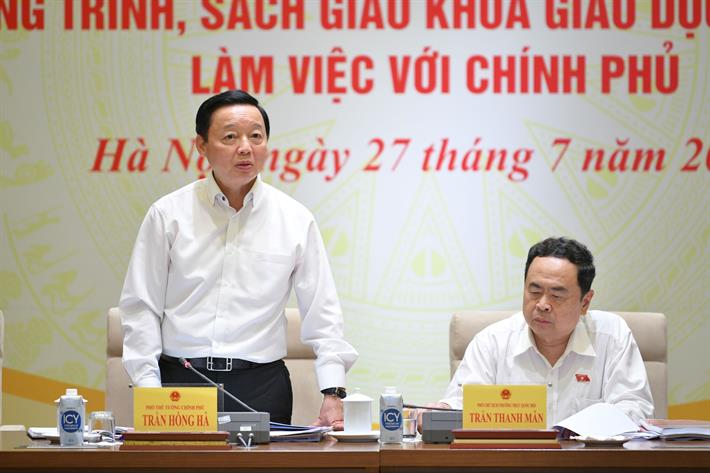Phát biểu tại buổi làm việc, Phó Thủ tướng Trần Hồng Hà bày tỏ sự đồng tình với các số liệu, kết quả, đánh giá, nhận định mà Đoàn giám sát của Quốc hội đã nêu. Theo Phó Thủ tướng, Đoàn giám sát đã làm việc toàn diện, cụ thể, các số liệu thận trọng, những nhóm nội dung đặt ra đều là những vấn đề nổi bật trong triển khai đổi mới chương trình, sách giáo khoa giáo dục phổ thông.