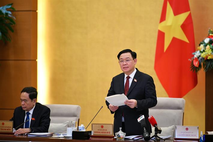 Chủ tịch Quốc hội Vương Đình Huệ phát biểu tại phiên họp