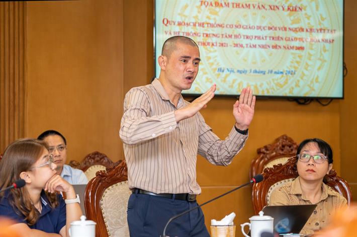 Đại diện Hội Người mù Việt Nam đề nghị nên có giải pháp để chính những người khuyết tật có cơ hội làm việc tại các Trung tâm Hỗ trợ phát triển giáo dục hòa nhập.