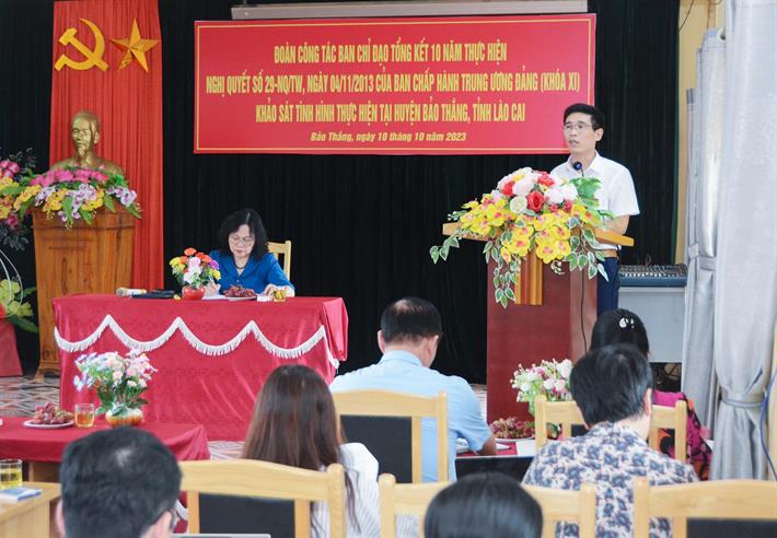 Báo cáo kết quả 10 năm thực hiện Nghị quyết 29, Hiệu trưởng Trường THPT số 1 Bảo Thắng Lê Quang Hưng cho biết: 10 năm qua, nhà trường đã quán triệt đầy đủ nội dung của Nghị quyết, từng bước thực hiện những nội dung cụ thể trong các nội dung lớn của Nghị quyết.