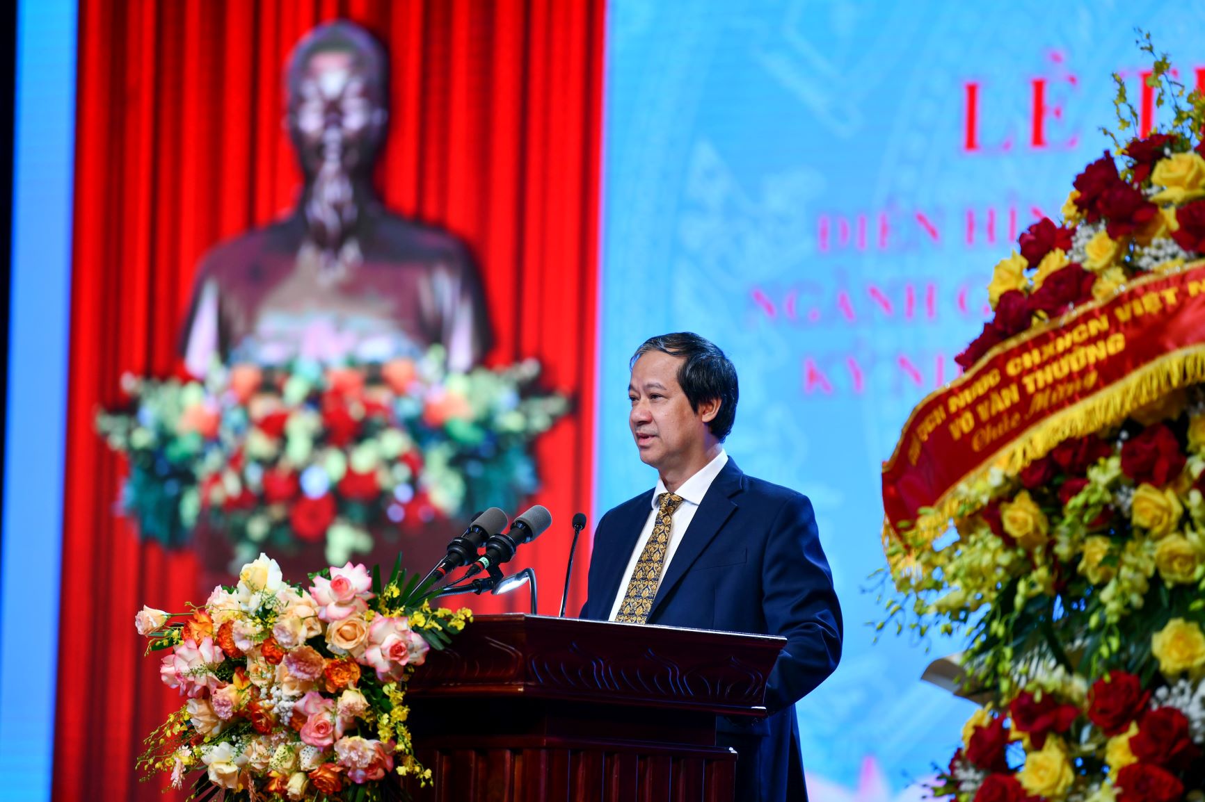 Chia sẻ niềm vui, sự cảm động khi đến dự lễ tuyên dương điển hình tiên tiến, nhà giáo tiêu biểu của ngành giáo dục Thủ đô, Bộ trưởng Nguyễn Kim Sơn gửi tới các nhà giáo lời thăm hỏi, lời chào và lời chúc mừng. Bộ trưởng cũng gửi lời chúc mừng đặc biệt đến 68 tập thể, 60 cá nhân nhà giáo được tuyên dương.