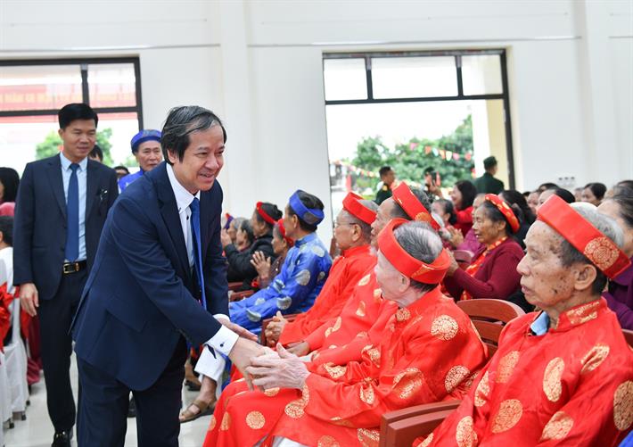 Bộ trưởng Nguyễn Kim Sơn vui mừng về dự ngày hội Đại đoàn kết toàn dân tại thôn Tiên Lữ, xã Dân Hoà, huyện Thanh Oai, thành phố Hà Nội