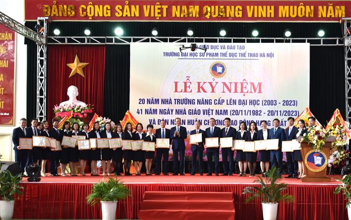 Tại buổi lễ, Thứ trưởng Bộ GDĐT Phạm Ngọc Thưởng đã trao Quyết định của Chủ tịch nước tặng Huân chương Lao động hạng Nhất cho Công đoàn Trường Đại học Sư phạm Thể dục Thể thao Hà Nội; trao tặng Bằng khen của Thủ tướng Chính phủ, Bộ GDĐT cho các tập thể, cá nhân nhà trường đã có những thành tích, đóng góp đối với sự phát triển chung của ngành giáo dục và đào tạo.