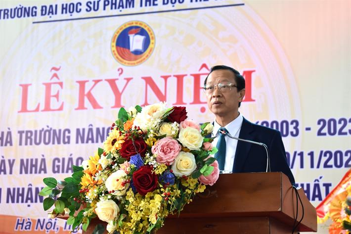 Phát biểu tại buổi lễ, Thứ trưởng Bộ GDĐT Phạm Ngọc Thưởng gửi lời chúc mừng đến các thầy giáo, cô giáo nhân ngày Nhà giáo Việt Nam 20/11, đồng thời đánh giá cao sự lớn mạnh, phát triển về mọi mặt của Trường Đại học Sư phạm Thể dục Thể thao Hà Nội trong 20 năm qua.