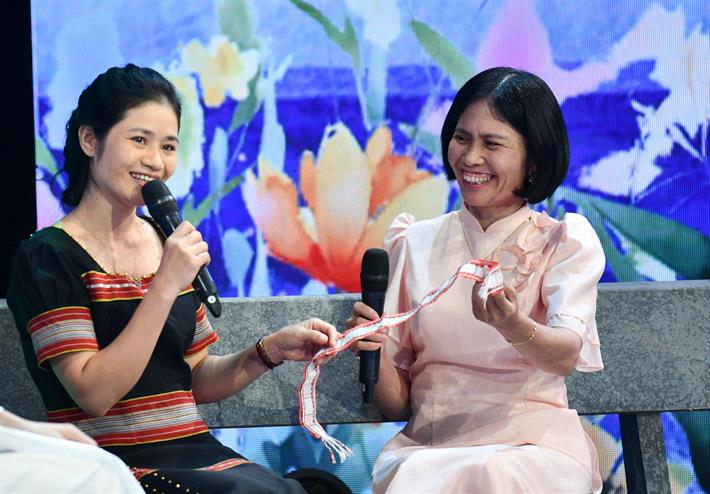 Cuộc gặp gỡ giữa hai cô giáo Nguyễn Thị Như Yến và cô giáo Đinh Thị A Nênh trên sân khấu chương trình