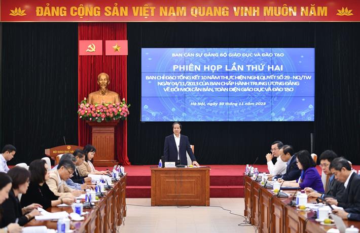 Trong số nhiều hoạt động chuẩn bị tiến hành tổng kết 10 năm thực hiện Nghị quyết 29, Bộ trưởng nhắc đến hai cuộc làm việc quan trọng mới đây nhất, đó là: Cuộc làm việc do Phó Thủ tướng Chính phủ Trần Hồng Hà chủ trì ngày 28/11; và cuộc làm việc giữa Ban Tuyên giáo Trung ương và Bộ GDĐT ngày 29/11. Sẽ tiếp tục có nhiều hoạt động cho đến khi hoàn thiện Đề án tổng kết 10 năm thực hiện Nghị quyết 29 trình Bộ Chính trị.