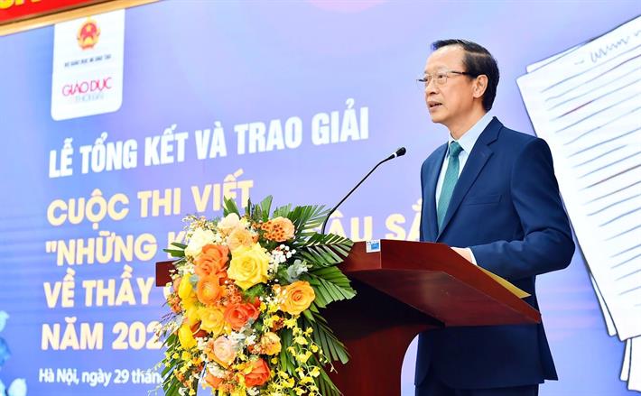 Phát biểu tại Lễ tổng kết và trao giải Cuộc thi viết “Những kỷ niệm sâu sắc về thầy cô và mái trường” năm 2023, Thứ trưởng Bộ GDĐT Phạm Ngọc Thưởng nhận định: Cuộc thi không chỉ là cơ hội để các em học sinh thể hiện lòng biết ơn và tình cảm của mình đối với những người đã dìu dắt, dạy dỗ mà còn là dịp để những người làm công tác giáo dục nhìn nhận, đánh giá lại giá trị, tầm quan trọng của nghề giáo trong việc định hình tương lai của thế hệ trẻ.