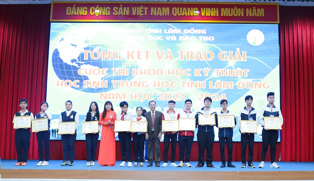 Ban Giám khảo Cuộc thi KHKT dành cho học sinh trung học tỉnh Lâm Đồng đã chấm, xét chọn và trao giải Cuộc thi năm học 2023-2024 với 6 giải Nhất, 8 giải Nhì, 21 giải Ba và 38 giải Tư.