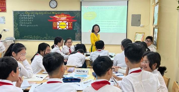 Cô trò Trường THCS Bế Văn Đàn (Đống Đa, Hà Nội) trong giờ học