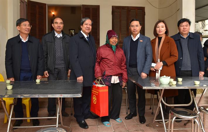 Bộ trưởng Nguyễn Kim Sơn tặng quà Tết cho gia đình nghèo tại xã Vĩnh Quỳnh, huyện Thanh Trì