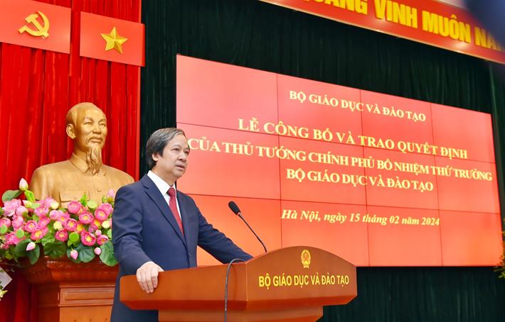 Khẳng định sẽ nỗ lực hết sức để hoàn thành tốt mọi nhiệm vụ được giao với tinh thần đoàn kết, cầu thị, tân Thứ trưởng mong muốn trên cương vị công tác mới tiếp tục nhận được sự quan tâm lãnh đạo, chỉ đạo, giúp đỡ của lãnh đạo Đảng và Chính phủ, các cơ quan ban ngành Trung ương; đặc biệt sự ủng hộ, chia sẻ, giúp đỡ, chung sức, đồng lòng của lãnh đạo Bộ GDĐT, các cơ quan ban ngành đoàn thể, các đồng chí, đồng nghiệp để tiếp tục thực hiện sứ mệnh trồng người cao cả.