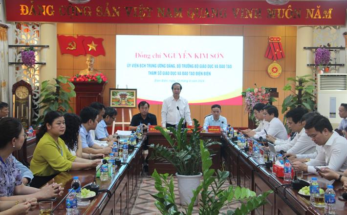 Làm việc với Sở GDĐT tỉnh Điện Biên, Bộ trưởng Nguyễn Kim Sơn nhắc tới vai trò quan trọng của quản lý cấp Sở trong việc triển khai các chính sách giáo dục vào thực tế. Bộ trưởng cũng chia sẻ sự cảm thông, đánh giá cao và cảm ơn các cán bộ, chuyên viên Sở GDĐT Điện Biên trong điều kiện nhiều khó khăn, thách thức, áp lực nhưng đã duy trì được kết quả giáo dục và làm được nhiều việc đáng ghi nhận.