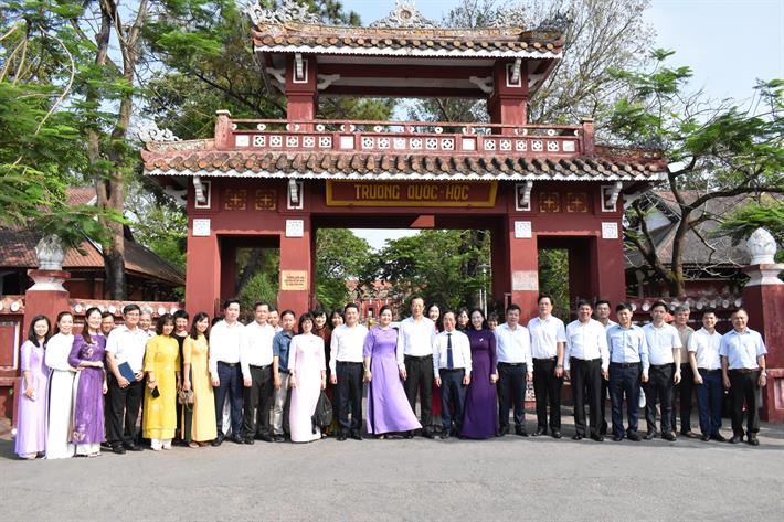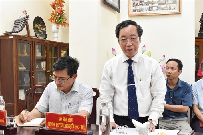 Trao đổi tại buổi làm việc, Thứ trưởng Bộ GDĐT Phạm Ngọc Thưởng nhấn mạnh, Trường THPT chuyên Quốc Học - Huế là ngôi trường THPT duy nhất được công nhận là di tích Quốc gia đặc biệt, với những thế hệ thầy cô giáo, học sinh tên tuổi hết sức lẫy lừng. Đây chính là cái nôi về tinh thần hiếu học, đóng góp nhân lực xây dựng đất nước. Truyền thống lịch sử của trường chính là nguồn lực rất lớn để tất cả các thế hệ thầy cô giáo và học sinh ươm mầm khát vọng.