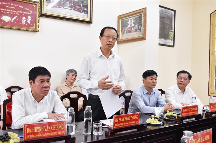 Thứ trưởng Bộ GDĐT Phạm Ngọc Thưởng phát biểu tại buổi làm việc