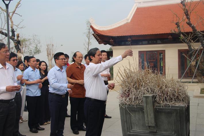 Bộ trưởng Nguyễn Kim Sơn và đoàn công tác Bộ GDĐT thắp hương tại Đền thờ liệt sĩ tại chiến trường Điện Biên Phủ