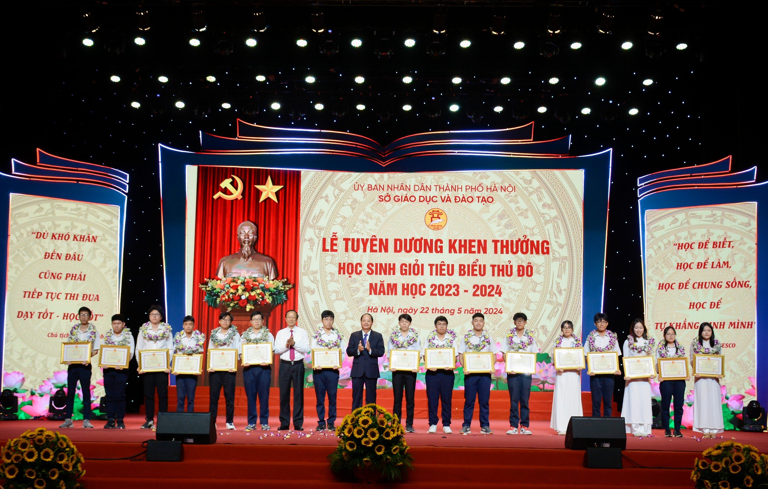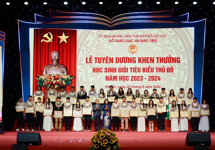 Lễ tuyên dương, khen thưởng học sinh giỏi tiêu biểu Thủ đô năm học 2023-2024 có sự tham gia của 820 học sinh giỏi xuất sắc, học sinh đạt được nhiều thành tích trong học tập, trong các phong trào thi đua, hoạt động ngoại khóa, công tác xã hội, công tác Đoàn, Đội, học sinh nghèo vượt khó, học sinh người dân tộc học giỏi và bản thân có những việc làm tốt, tạo sự lan toả trong xã hội... đại diện cho gần 2,3 triệu học sinh Thủ đô.