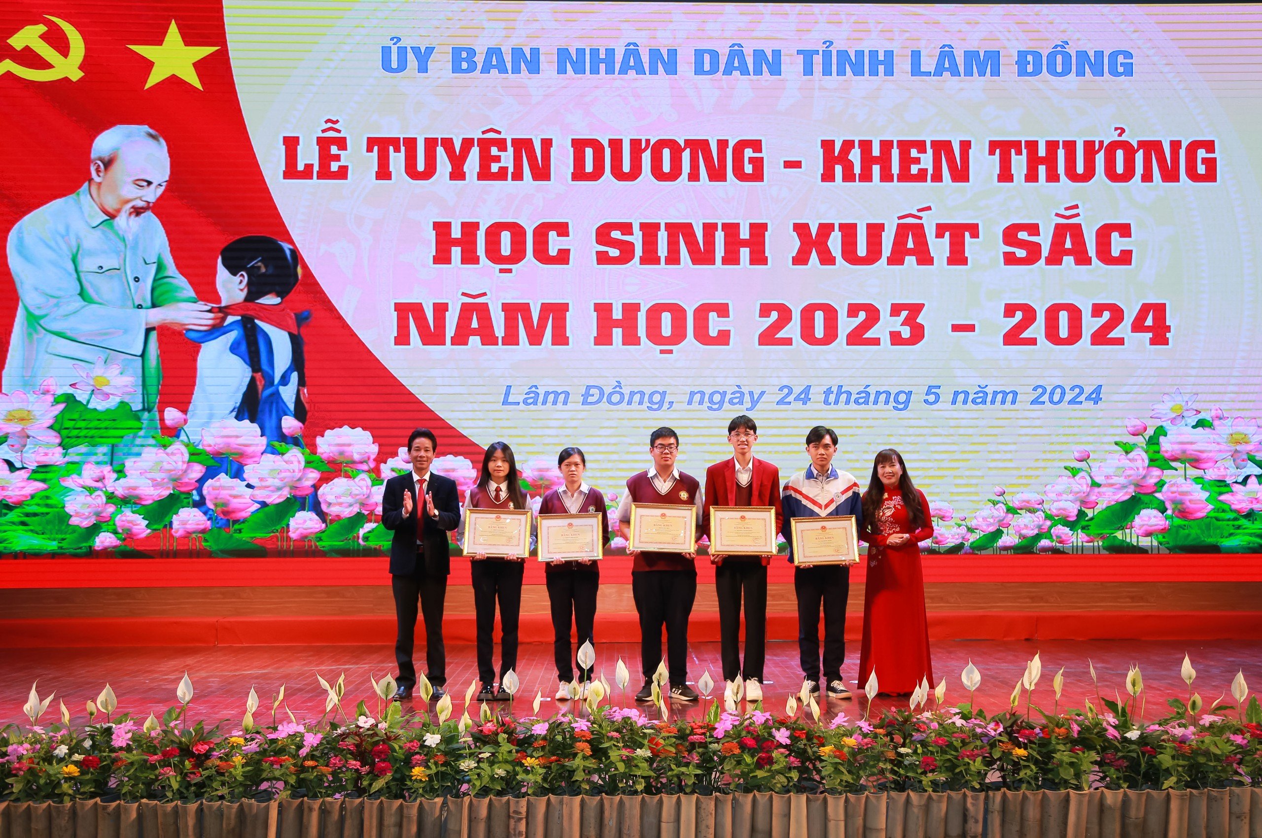 Tại lễ tuyên dương, 122 học sinh xuất sắc năm học 2023-2024 của tỉnh Lâm Đồng đã được nhận khen thưởng. Cũng tại buổi lễ, Hội Khuyến học tỉnh Lâm Đồng đã khen, thưởng cho 72 học sinh đạt giải nhất trong kỳ thi chọn học sinh giỏi cấp tỉnh năm 2023-2024.