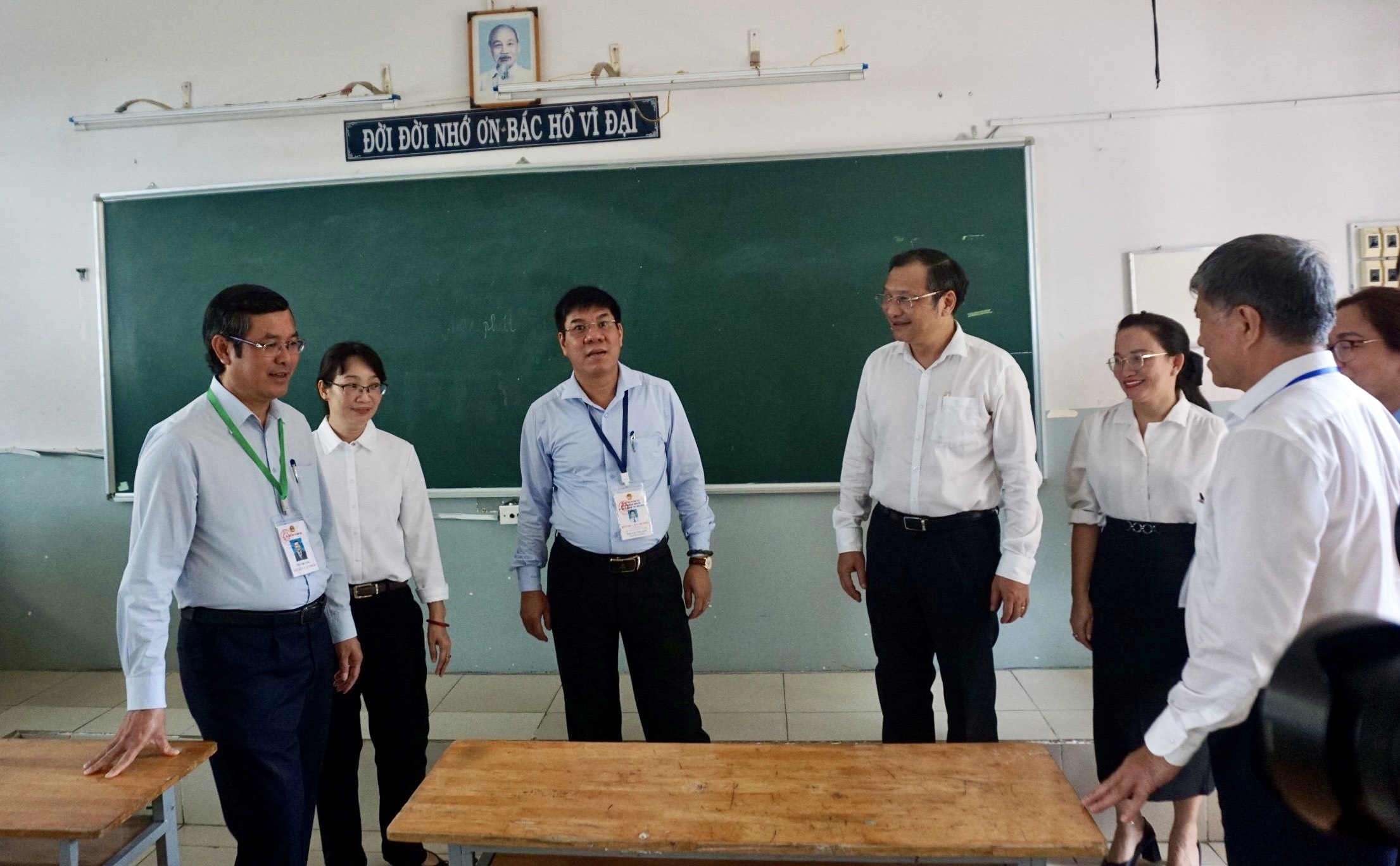 Trước đó, đoàn công tác đã đi kiểm tra tình hình chuẩn bị cơ sở vật chất và bố trí nhân lực tại điểm in sao đề thi và một điểm thi tốt nghiệp THPT năm 2024 trên địa bàn TPHCM.