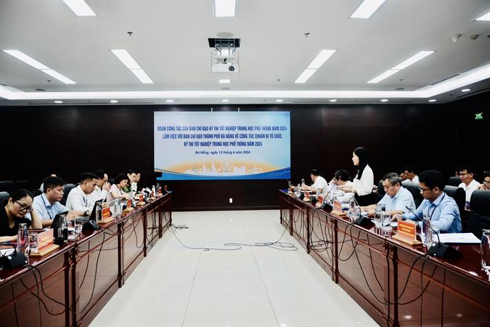 Báo cáo với Đoàn công tác, ông Trần Chí Cường, Phó Chủ tịch Ủy ban Nhân dân (UBND) Thành phố Đà Nẵng cho biết: Để công tác chuẩn bị được chu đáo, Chủ tịch UBND thành phố đã ban hành Chỉ thị số 03/CT-UBND ngày 29/5/2024 về việc tăng cường chỉ đạo, phối hợp tổ chức Kỳ thi tốt nghiệp THPT năm 2024 trên địa bàn thành phố Đà Nẵng.