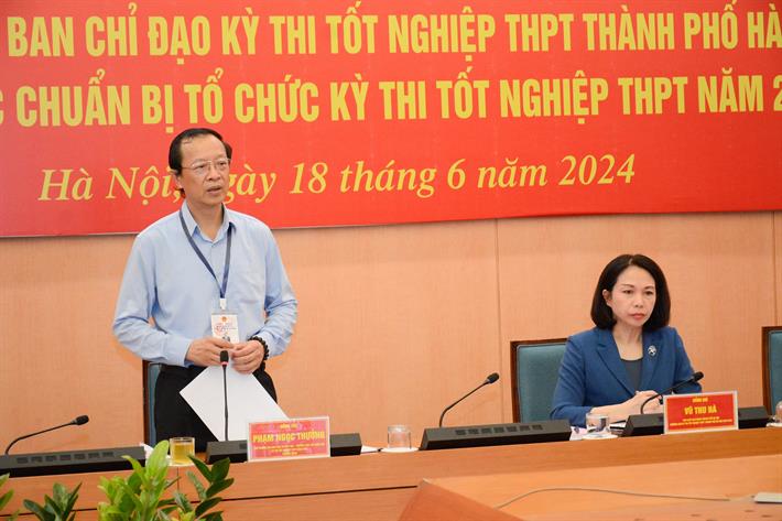 Kiểm tra thực tế và qua báo cáo của thành phố, Thứ trưởng Bộ GDĐT Phạm Ngọc Thưởng đánh giá cao sự chủ động của thành phố Hà Nội trong việc chỉ đạo quyết liệt, vào cuộc của tất cả các sở, ban, ngành liên quan để chuẩn bị cho Kỳ thi tốt nghiệp THPT 2024. Tuy số lượng thí sinh dự thi đông, lực lượng tham gia tổ chức Kỳ thi lớn nhưng các khâu của Kỳ thi được thành phố Hà Nội thực hiện bài bản, nghiêm túc.