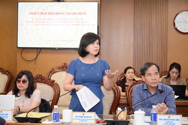 Tại phiên họp, các thành viên hội đồng thẩm định đã trao đổi, nêu ý kiến, đề xuất liên quan đến quy hoạch hệ thống cơ sở giáo dục chuyên biệt đối với người khuyết tật và hệ thống trung tâm hỗ trợ phát triển giáo dục hòa nhập như phân bổ không gian; phân loại, phân hạng khuyết tât; nguồn kinh phí thực hiện; quỹ đất được cấp; quy định về pháp luật…
