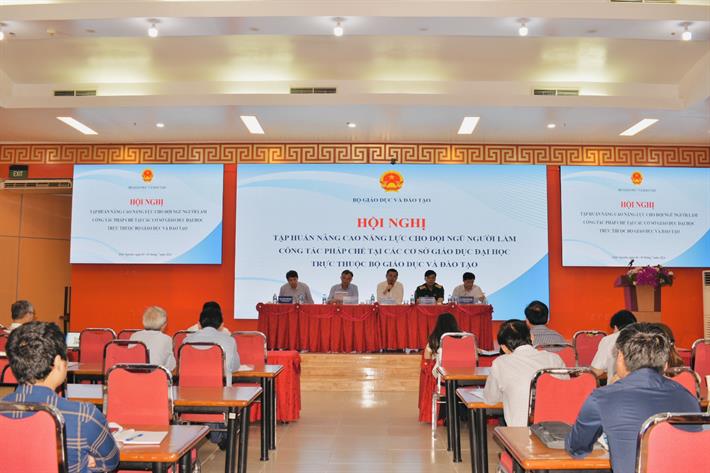 Tại hội nghị, các báo cáo viên đã giới thiệu, trao đổi, hướng dẫn về một số văn bản pháp luật quan trọng, liên quan trực tiếp đến những công việc cụ thể của công tác pháp chế tại các cơ sở giáo dục đại học như: Hướng dẫn xây dựng hệ thống văn bản nội bộ thuộc trách nhiệm và quyền hạn của cơ sở giáo dục đại học; tổ chức triển khai và thực hiện các văn bản pháp luật do cấp có thẩm quyền ban hành tại các cơ sở giáo dục đại học trực thuộc Bộ GDĐT; một số điểm mới về chức năng, nhiệm vụ công tác pháp chế tại các cơ sở giáo dục đại học công lập…