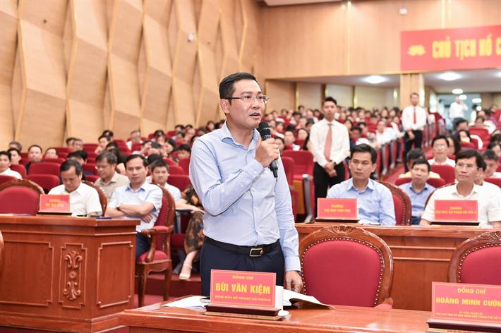 Giám đốc Sở GDĐT Hà Nội Trần Thế Cương trao đổi tại hội nghị
