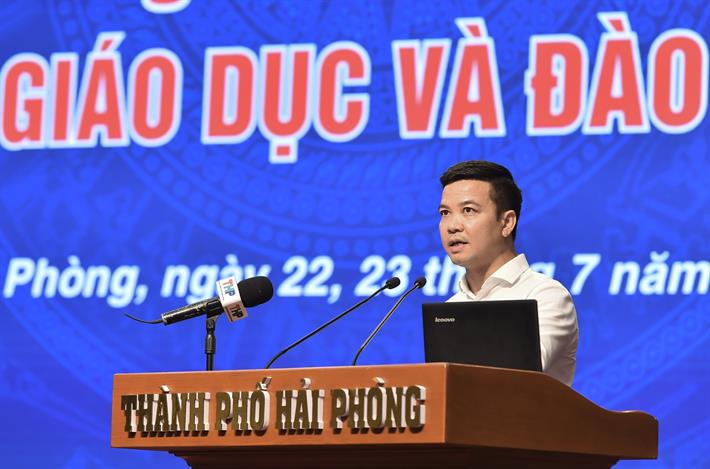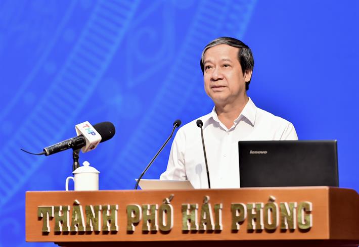 Chia sẻ về giáo dục Hải Phòng trong phát biểu chào mừng, Bí thư Thành uỷ Hải Phòng Lê Tiến Châu cho biết: Trong những năm qua thành phố Hải Phòng tập trung, đầu tư nguồn lực phát triển giáo dục với mục tiêu xây dựng Hải Phòng trở thành trung tâm quốc tế về giáo dục và đào tạo, nghiên cứu ứng dụng, phát triển khoa học và công nghệ. Thành phố đã ban hành một số chính sách cơ chế mạnh, có tính chất đột phá, đặc thù, như xây dựng chinh sách về phát hiện, bồi dưỡng học sinh giỏi; tuyển dụng, sử dụng, đãi ngộ giáo viên giỏi trong giáo dục đào tạo; hỗ trợ học phí cấp phổ thông… Hằng năm, ngân sách của thành phố dành cho giáo dục, đào tạo và dạy nghề chiếm hơn 35% tổng chi thường xuyên. Qua đó, tạo điều kiện cho giáo dục có những bước tiến đột phá.