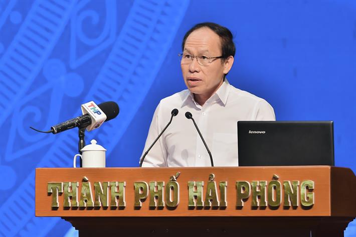 Bí thư Thành uỷ Hải Phòng Lê Tiến Châu phát biểu tại hội nghị