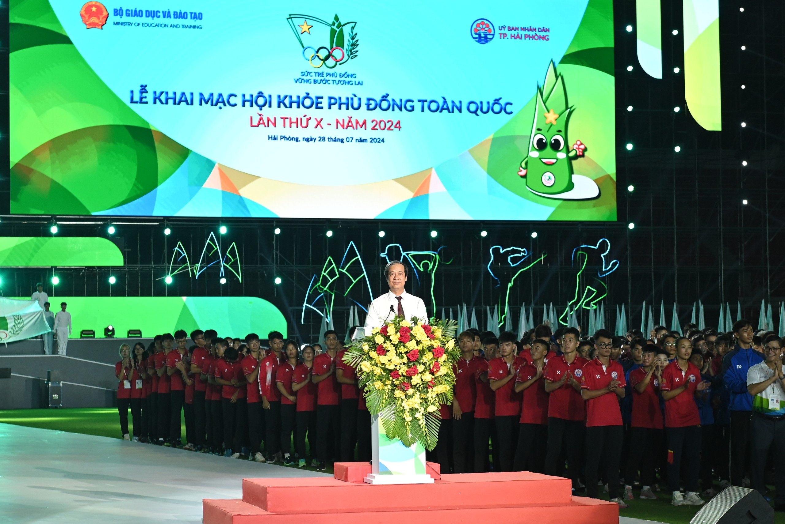 Bộ trưởng Bộ GDĐT Nguyễn Kim Sơn phát biểu khai mạc Hội khoẻ Phù Đổng toàn quốc lần thứ X năm 2024