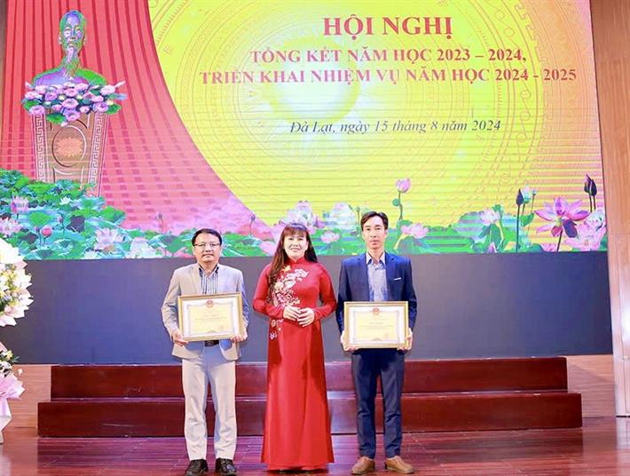 Giám đốc Sở GDĐT Lâm Đồng Phạm Thị Hồng Hải trao giấy khen cho các cá nhân có thành tích xuất sắc trong năm học 2023-2024