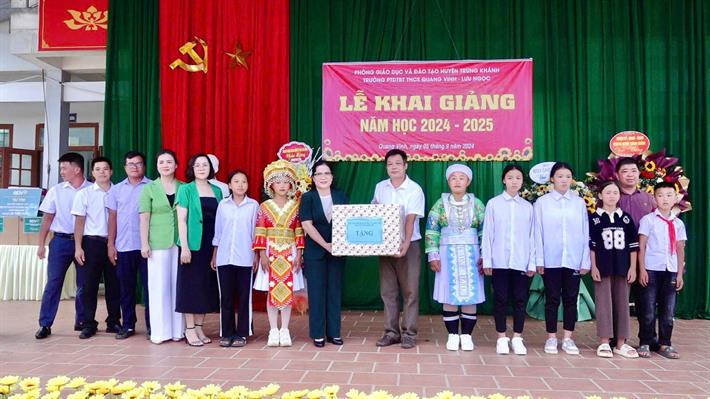 Thứ trưởng Nguyễn Thị Kim Chi thăm, tặng quà Trường Phổ thông Dân tộc bán trú THCS Quang Vinh, Trùng Khánh, Cao Bằng