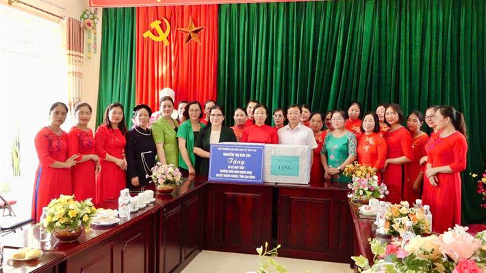 Nhân dịp này, Thứ trưởng đã tặng quà cho các 3 trường học và tặng 20 máy tính cho Trường Mầm non Quang Vinh phục vụ công tác chuyên môn của nhà trường.
