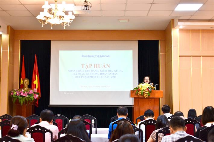 Phát biểu tại tập huấn, Vụ trưởng Vụ Pháp Chế (Bộ GDĐT) Mai Thị Anh nhận định: Công tác xây dựng, soạn thảo, ban hành; kiểm tra, xử lý, rà soát, hệ thống hóa văn bản quy phạm pháp luật đóng vai trò quan trọng trong quản lý nhà nước. Tuy nhiên, trên thực tế triển khai, công tác này còn gặp nhiều khó khăn, vướng mắc, chồng chéo. Do đó, việc tập huấn về các quy trình, thủ tục về văn bản quy phạm pháp luật cho công chức, viên chức tại các đơn vị thuộc Bộ GDĐT là cần thiết để có thực hiện tham mưu, phối hợp, triển khai công việc chặt chẽ và đúng pháp luật quy định.