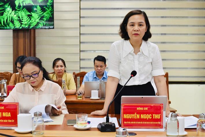 Bà Nguyễn Ngọc Thư, Giám đốc Sở GDĐT tỉnh Cao Bằng báo cáo tại buổi làm việc