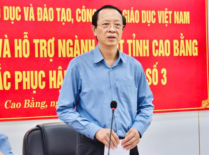 Đánh giá cao những nỗ lực trong công tác lãnh đạo, chỉ đạo quyết liệt của UBND tỉnh, ngành giáo dục để khắc phục khó khăn do cơn bão số 3 gây ra, Thứ trưởng đề nghị Sở GDĐT tỉnh Cao Bằng thực hiện tốt những nhiệm vụ trọng tâm trong thời gian tới.
