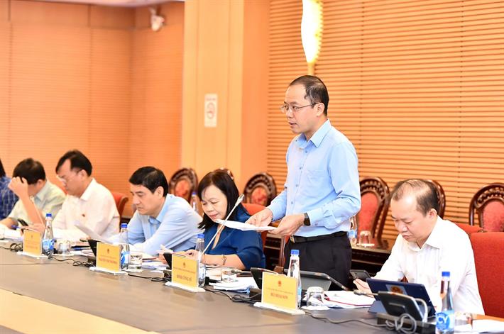 Phó Chủ nhiệm Uỷ ban Văn hoá, Giáo dục của Quốc hội Tạ Văn Hạ trao đổi tại cuộc làm việc