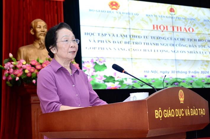 Trong phát biểu đề dẫn, GS.TS Nguyễn Thị Doan, Chủ tịch Hội Khuyến học Việt Nam cho biết, hội thảo được tổ chức nhằm nghiên cứu sâu sắc hơn tư tưởng của Chủ tịch Hồ Chí Minh về vai trò của con người ở mỗi lĩnh vực, các tiêu chí đánh giá người công dân tốt, cán bộ tốt trong xây dựng và phát triển đất nước ở mọi giai đoạn cách mạng theo tư tưởng của Người.