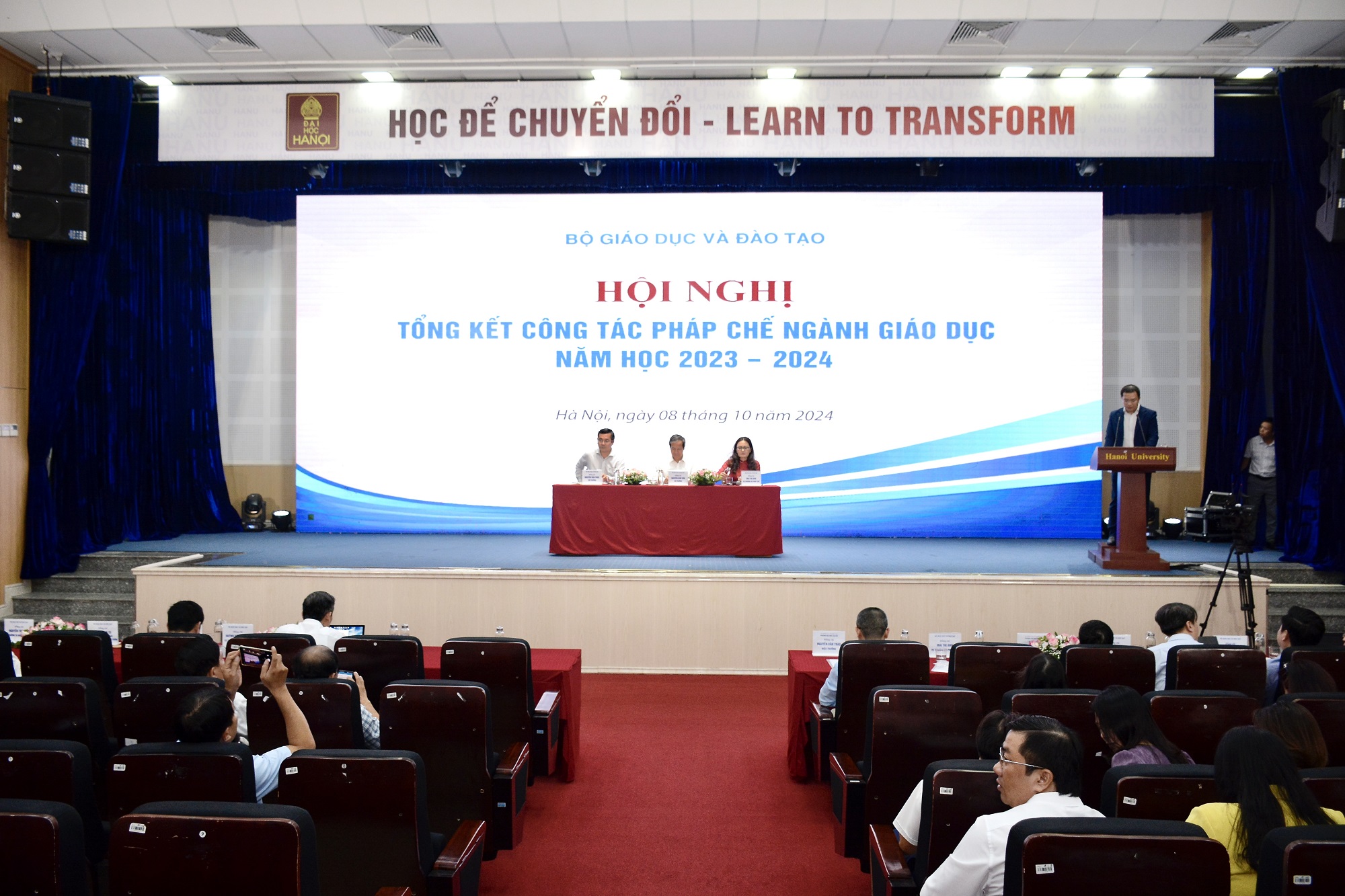 Báo cáo kết quả thực hiện công tác pháp chế ngành giáo dục năm học 2023-2024, Vụ trưởng Vụ Pháp chế Mai Thị Anh cho biết: Trong giai đoạn từ tháng 9/2023 đến thán 8/2024, Bộ GDĐT đã ban hành và trình ban hành được tổng số 53 văn bản, bao gồm: 2 Nghị định, 1 Nghị quyết của Chính phủ; 1 Quyết định của Thủ tướng Chính phủ, 27 Thông tư, 22 Quyết định cá biệt của Bộ trưởng.