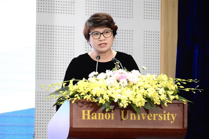 Vụ trưởng Vụ Giáo dục Đại học Nguyễn Thu Thủy tham luận tại hội nghị