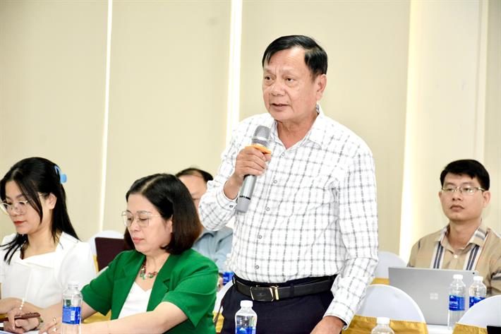 Phó Giám đốc Sở GDĐT Bắc Giang Nguyễn Văn Thêm trao đổi tại hội thảo.