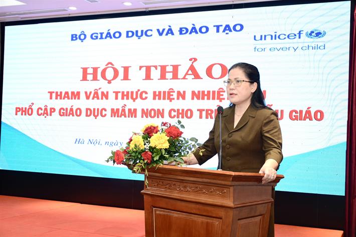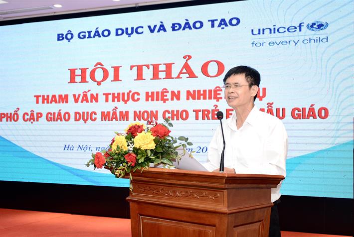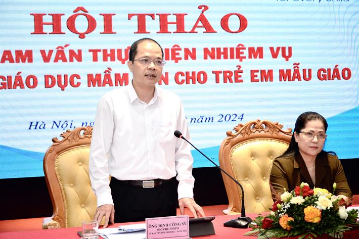 Thứ trưởng nhấn mạnh, trong thời gian gần đây, nhiệm vụ phổ cập giáo giáo dục mầm non cho trẻ 3 đến 5 tuổi được đề cập, nêu rõ, quán triệt ở Nghị quyết số 42 của Ban Chấp hành Trung ương Đảng, Nghị quyết số 68 của Chính phủ và gần nhất là Kết luận số 91 của Bộ Chính trị. Điều đó khẳng định Đảng, Nhà nước, Chính phủ rất quan tâm đến việc thực hiện nhiệm vụ này.