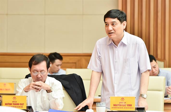 Chủ nhiệm Uỷ ban Văn hoá, Giáo dục của Quốc hội Nguyễn Đắc Vinh trao đổi tại phiên họp