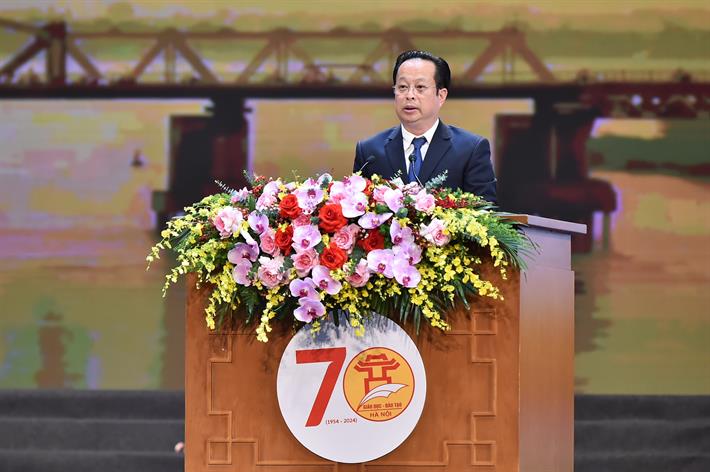 “Thay mặt lãnh đạo Bộ GDĐT, tôi xin đặc biệt chúc mừng đối với những thành quả mà ngành Giáo dục Thủ đô đã đạt được trong suốt 70 năm qua và bày tỏ lời cảm ơn đặc biệt, sâu sắc tới lãnh đạo Thành phố qua các thời kỳ”, Bộ trưởng nói.