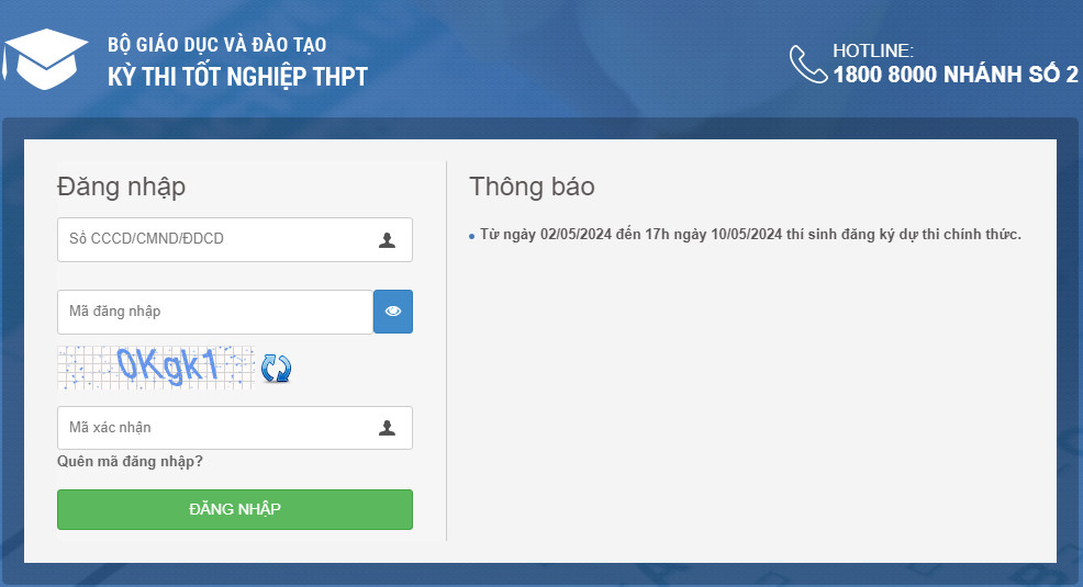 Chính thức mở Cổng đăng ký trực tuyến Kỳ thi tốt nghiệp THPT năm 2024 10/05/2024 Thực hiện: Nguồn: moet.gov.vn Sao chép liên kết