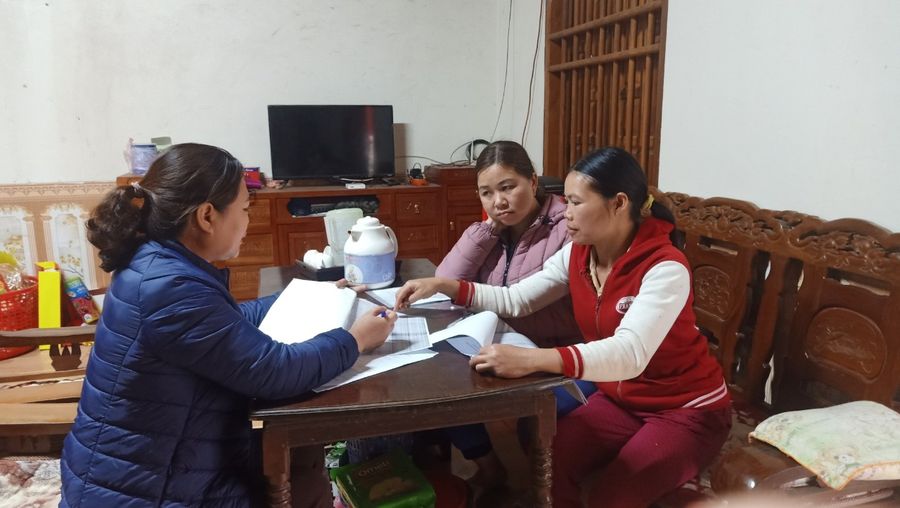 Cô Vi Thị Bình (bên trái) đến nhà giảng dạy cho học viên